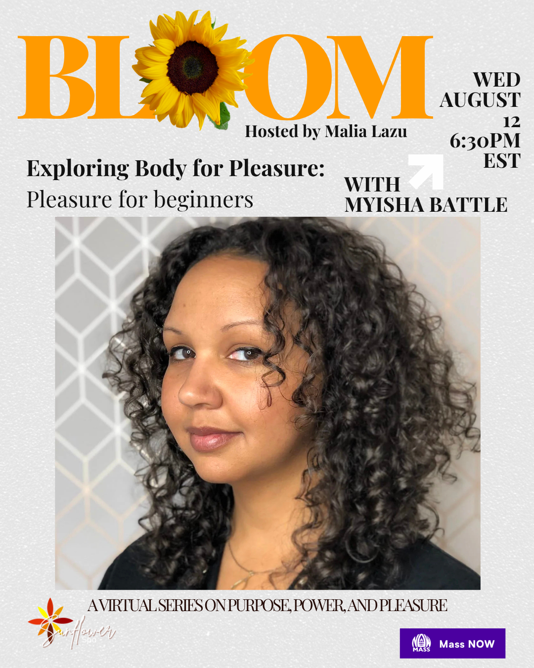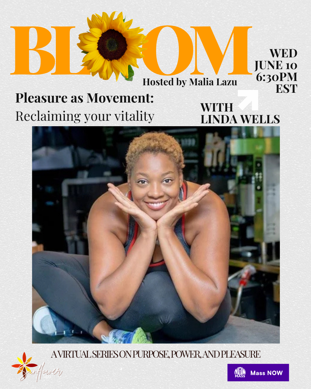 This summer, step into a space where learning meets embodiment. Bloom Zoom is a digital revival series designed to help you reconnect with your body, desire, and sense of possibility. Through interactive, guided sessions, you’ll explore pleasure as both a practice and a pathway to becoming—gaining language, frameworks, and personal insight along the way.