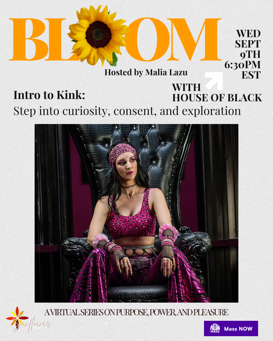 - September 9 (6:30–7:30pm EST): Intro to Kink — A guided, consent-centered introduction to kink exploration